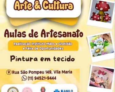 Curso e Feira de Artesanato voltado para Adultos e Idosos, proporcionando aprendizado, socialização e geração de renda por meio do trabalho manual.