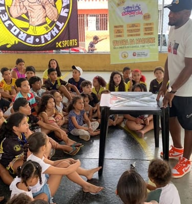 Nos dias 28 e 29 de outubro de 2023, realizamos a Virada Esportiva Marcone na quadra pública da Praça Irmã Elza Baeta Barbosa (Parque Vila Maria, SP), em parceria com a Secretaria de Esportes (SEME) conforme Dotação Orçamentária: 191027812301745143350390000150090011 e Nota de Empenho 101883. Contemplado no edital o evento trouxe dois dias de esporte e lazer, incluindo festival esportivo, Muay Thai, Zumba, Freestyle, X1, brinquedos recreativos, apresentação circense e aulas de Libras, promovendo inclusão e bem-estar para a comunidade.
