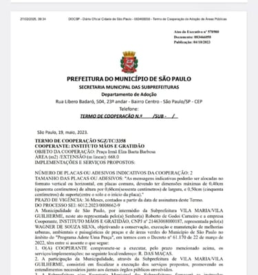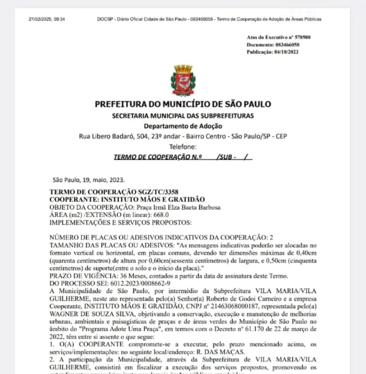 No âmbito do Programa “Adote Uma Praça”, da Prefeitura de São Paulo, adotamos a Praça Irmã Elza Baeta Barbosa, localizada na Rua das Maçãs, Parque Vila Maria, São Paulo – SP, com uma área total de 668,00 m². O projeto está formalizado por meio do processo SEI nº 6012.2023/0008662-9. Essa iniciativa tem como principal objetivo a conservação da área pública, além de promover a conscientização da população sobre a importância da preservação ambiental. As ações desenvolvidas incluem a manutenção periódica da praça, a realização de eventos educativos sobre o meio ambiente e atividades voltadas à educação ambiental para crianças no local..